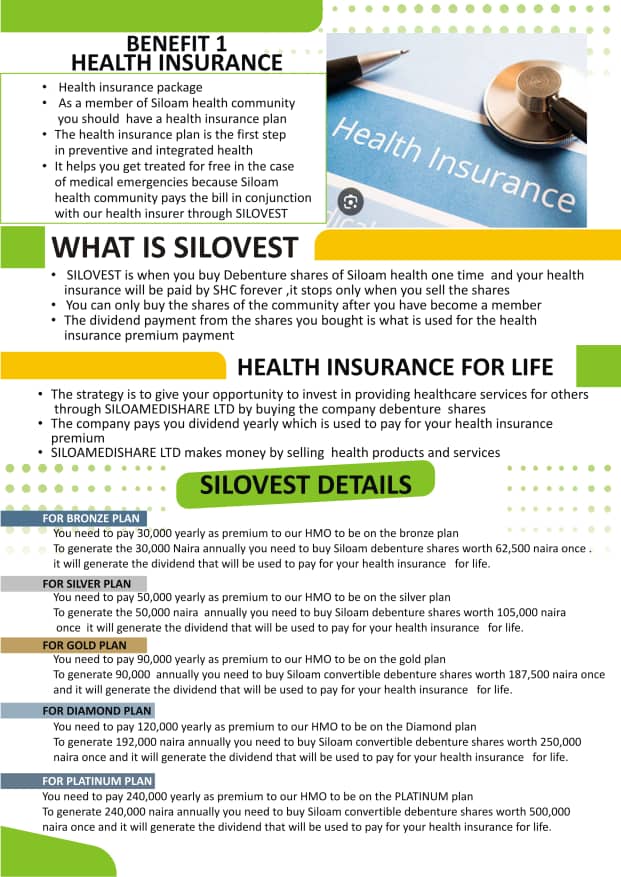 If you want free health insurance for life you go for silovest (a privately placed equity debenture shareholding in siloamedishare ltd)